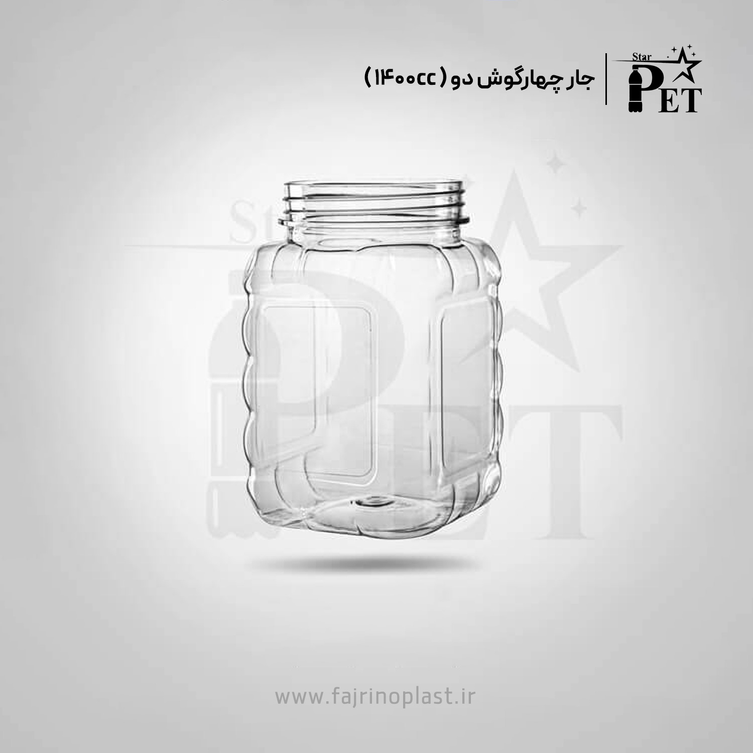 بررسی مشخصات، قیمت و خرید جار چهارگوش دو ۱۴۰۰ سی سی از برند پت استار، رنگ شفاف.